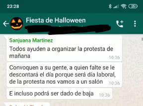 “Fiesta de Halloween” es el nombre de un chat creado en febrero pasado por Erick Muñiz, director de noticias internacionales, quien –según anteriores testimonios- se encarga de presionar a integrantes de Notimex para: “crear cuentas y si no lo hacíamos nos empezaban a intimidar y hostigar. Incluso, corrieron a mucha gente de manera injusta porque si no te sumabas a apoyar a Sanjuana, inmediatamente te convertían en el enemigo del que se tenían que deshacer”.