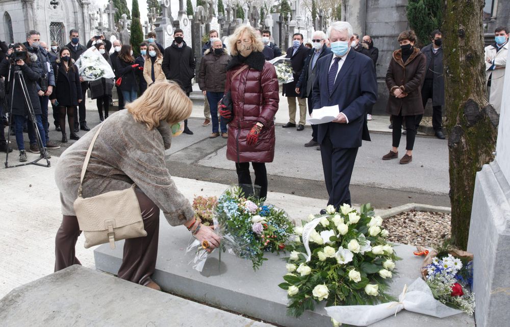 La familia y amigos de Gregorio Ordoñez han rendido homenaje este sábado en el cementerio de Polloe al político que “luchó para que el pueblo vasco no cayera bajo el yugo de ETA”. Su mujer, Ana Iribar y su hermana, Consuelo Ordoñez, acompañadas de la presidenta del Parlamento vasco, Bakartxo Tejería, el alcalde de San Sebastián, Eneko Goya y el presidente del PP vasco, Carlos Iturgaiz, entre otros concejales nacionalistas y socialistas, han reivindicado la figura del que entonces era concejal del PP el día en que se cumplen 26 años desde que un comando de ETA le asesinara de un tiro en la nuca en San Sebastián, mientras comía en el bar La Cepa.