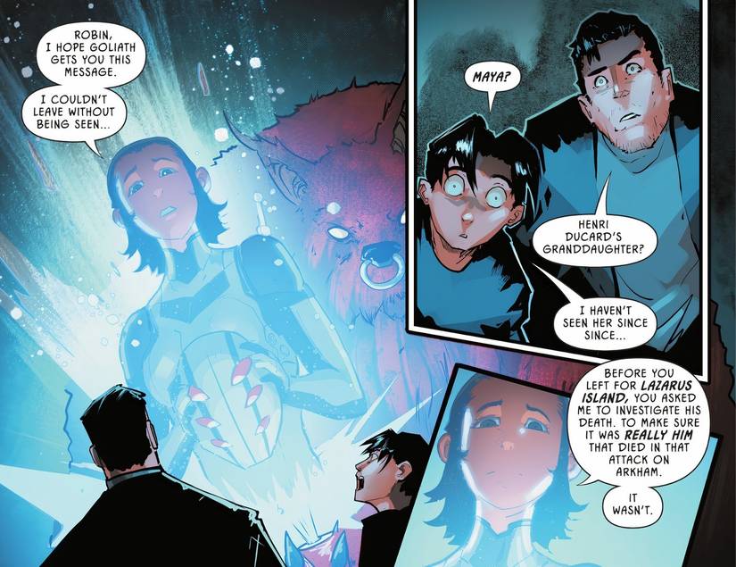 Durante los últimos momentos de batman y robin #10 de Joshua Williamson y Nikola Čižmešija, los lectores podrán disfrutar el regreso sorpresa de Maya Ducard, quien comparte un mensaje importante sobre el paradero de Bane. Maya ha sido una aliada de Damian durante mucho tiempo, y los dos incluso han fomentado una relación de hermano/hermana. Es una de las pocas amistades estables que ha tenido Damián en su vida.