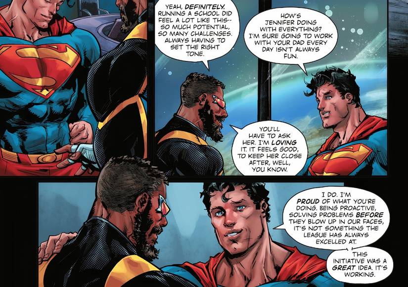 La historia de Black Lightning como educador lo convierte en el héroe perfecto para estar a cargo de la iniciativa de la Liga de la Justicia para ayudar a los metahumanos en riesgo. Como le dijo Superman en una conversación sobre esta iniciativa, “Resolver los problemas antes de que nos exploten en la cara no es algo en lo que la Liga siempre haya destacado. Esta iniciativa es una gran idea”. Superman admite la culpa de la Liga en lo ocurrido dentro de la comunidad de héroes al reconocer sus errores pasados, y ahora Black Lightning ha tomado medidas monumentales para reparar las consecuencias de su calamitosa batalla.