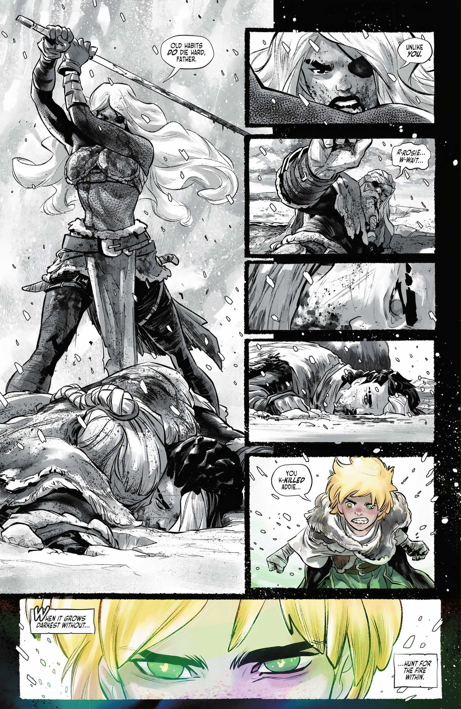 Independientemente del universo, la familia Wilson tiene una historia complicada y Caballeros oscuros de acero: Allwinter no es una excepción. Slade ha hecho algo para “destruir” a sus dos hijos y abrir una brecha en su matrimonio, y Rose ha seguido una vez más los pasos de su padre como asesina. Ravager siempre es una luchadora hábil, gracias a su precognición (que también existe en Todo el invierno) y un entrenamiento intenso, pero con frecuencia pierde, como se muestra en las batallas contra Cassandra Cain, su “hermano” Respawn y (lo más importante) su padre. Todo el invierno Le da la oportunidad de brillar.