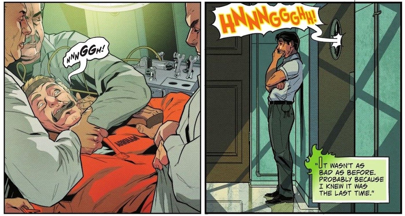 - Alan Scott, un héroe queer, orquesta una fuga de Arkham Asylum después de experimentar una terapia de electroshock y presenciar a su amigo trans someterse a una violenta terapia de conversión.