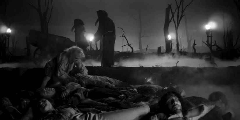 Jugo de escarabajo Se dio a entender que Betelgeuse había estado casado en algún momento de su vida, y la figura no muerta incluso sacó el anillo (y el dedo) de una ex esposa mientras intentaba casarse con una Lydia adolescente. Esta insinuación de la historia de fondo termina inspirando un elemento importante de Beetlejuice Beetlejuiceya que la ex esposa de Betelgeuse, Delores, es una gran amenaza para él durante toda la película. En el flashback extendido a los orígenes de Betelgeuse, se revela que el robo de tumbas de Betelgeuse en realidad Terminó presentándoselo a Deloresque acechaba los campos de los muertos en la misma época cuando se encontró con el sucio ladrón de tumbas.