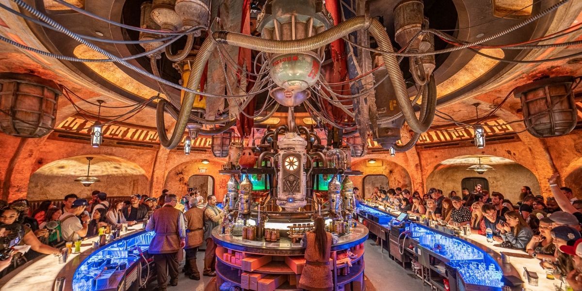 “/> Se le ve teniendo una pelea completa en un bar y un tiroteo una vez que el Darshi sospecha de la presencia de Thrawn y Vader. Como tal, la evidencia de su batalla se puede ver en la Cantina de Oga real, completa con marcas de bláster e impactos en las paredes de piedra. Es un detalle muy pequeño pero muy interesante que ayuda absolutamente al Guerra de las Galaxias-La tierra temática se siente real, como si los invitados realmente hubieran entrado en la galaxia muy, muy lejana.