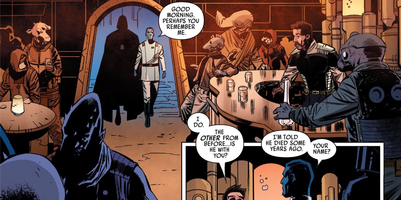En la nueva adaptación de la novela gráfica de Guerra de las Galaxias: Alianzas frustradas Por Timothy Zahn, Jody Houser, Pat Olliffe y Andrea Di Vito, el primer número presenta a Thrawn y Vader ingresando a Black Spire Outpost, aunque no es la primera vez que ninguno de ellos lo visita. Encargado de trabajar juntos por el propio Emperador., Thrawn y Vader están investigando una misteriosa perturbación que podría poner en peligro la seguridad del Imperio, similar a su primer encuentro años antes, cuando Vader todavía era Anakin Skywalker.