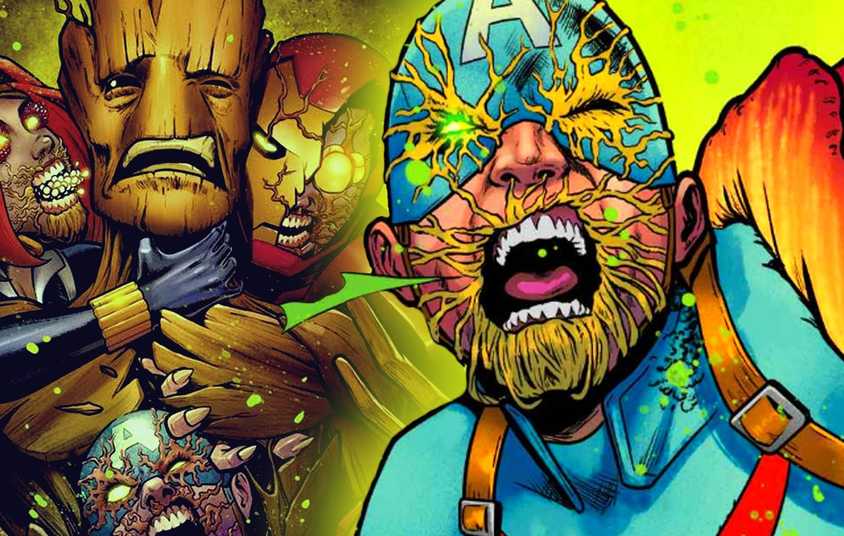 Hulk y Groot son los últimos héroes que quedan en pie en un apocalipsis de Marvel Zombies que ha convertido a los Vengadores y a los X-Men en terroríficos muertos vivientes basados en plantas.