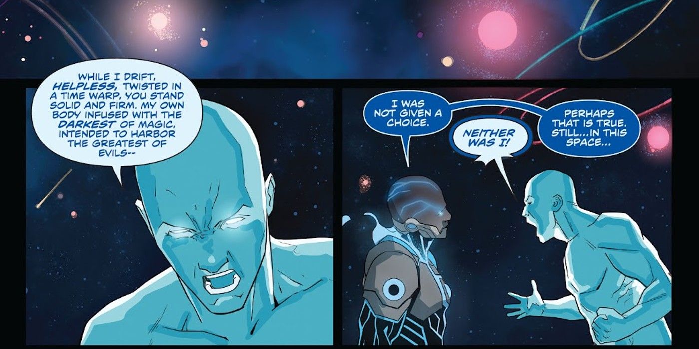 Mighty Morphin Power Rangers # 108 de Melissa Flores y Marco Renna no pierde el tiempo en aclarar las cosas al revelar que Vessel es literalmente el recipiente de Zordon, su cuerpo que Rita recuperó ella misma. Planificando con anticipación y preparándose para el futuro, se aseguró de que el hechizo que usó para atrapar su conciencia en la distorsión del tiempo también garantizaría que su cuerpo pudiera separarse y salvarse. Hizo que un “viejo amigo” lo recogiera, junto con la moneda del dragón, y los escondió a ambos. Mientras que la moneda del dragón fue llevada a Breel, el cuerpo de Zordon fue llevado al planeta Bizerk.