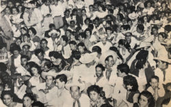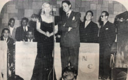 Esmeralda, cantante de moda en los años 50, figuró entre los muchos artistas que participaron en las variedades presentadas en los bailes rancheros. Cuando se tomó esta fotografía, Esmeralda cantó con el acompañamiento de la orquesta del maestro Nicolás Cuevas.
