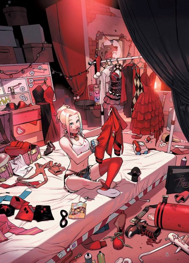 La portada variante para harley quinn #14, que ha sido compartido por League of Comic Geeks, presenta a Harley en su habitación con muchos artículos esparcidos. Ella está examinando una de sus chaquetas, mientras que muchos de sus trajes icónicos y sus accesorios son visibles en el fondo. Esta portada está ilustrada por Bengala. Este próximo número de harley quinn cuenta con el equipo creativo de Stephanie Phillips y Riley Rossmo.
