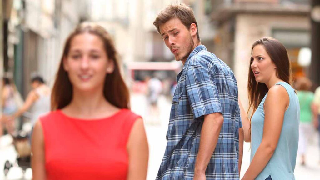 Seguramente ya estés tan cansado de esta foto que verla te produzca algo de repulsión. Pero eso no quiere decir que este rechazo no genere risa. Una chica paseando, un novio descarado y una novia indignada protagonizan una instantánea que los twiteros han sabido relacionar ingeniosamente con todos los ámbitos de la sociedad. Sin duda, una de las características principales del «meme»: la polivalencia.