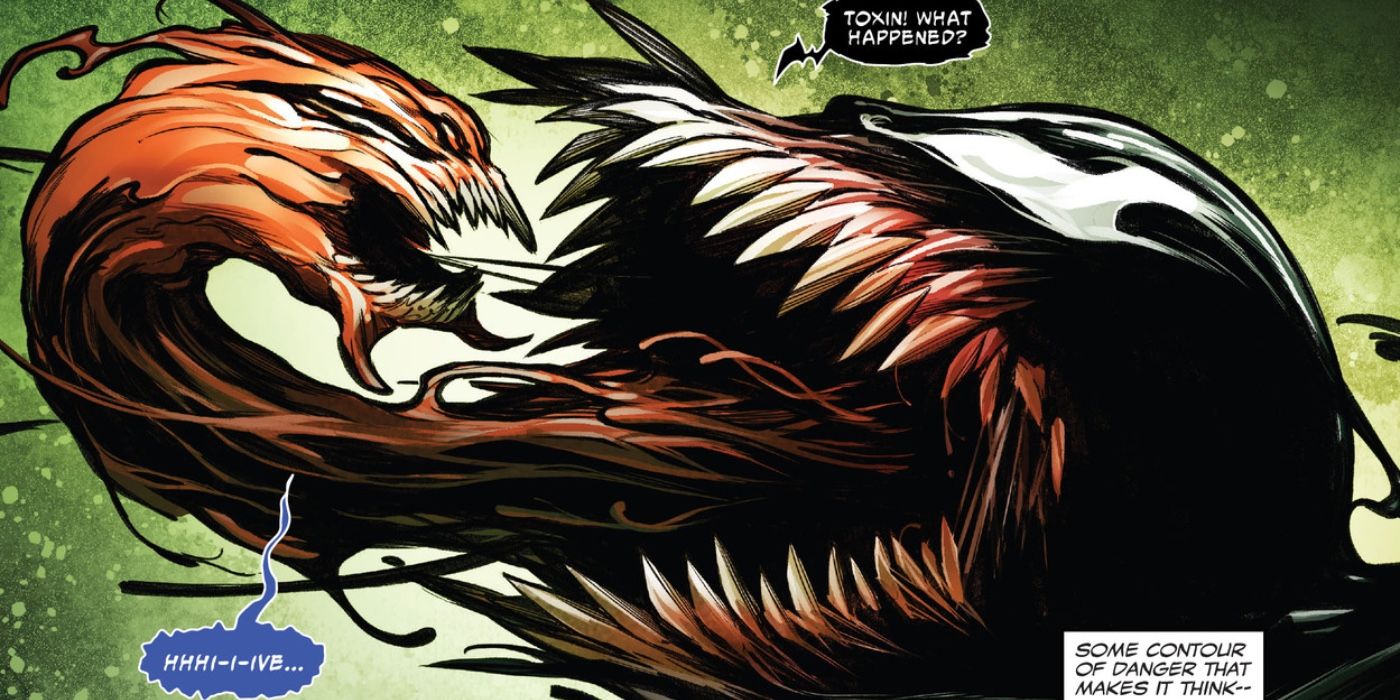 convirtiéndose efectivamente una especie de sistema de soporte vital para Toxin Hasta que pueda volver con Bren, es interesante notar que cuando Venom u otros simbiontes de su prole absorben otra entidad como ellos, el organismo Klyntar adicional generalmente se manifiesta como una segunda cabeza o se mezcla con sus diseños a la perfección, lo que hace que esta lengua Toxina sea única. evolución en el mismo sentido. Además, esta nueva lengua provoca imágenes de ExtraterrestreLos Xenomorfos icónicos de Venom, ya que el combo similar de lengua y boca que brota de la boca de Venom es una imagen absolutamente aterradora de presenciar, que se vuelve aún más aterradora porque Toxin aún conserva algo de control sobre sí misma mientras está adherida al cuerpo de Venom.