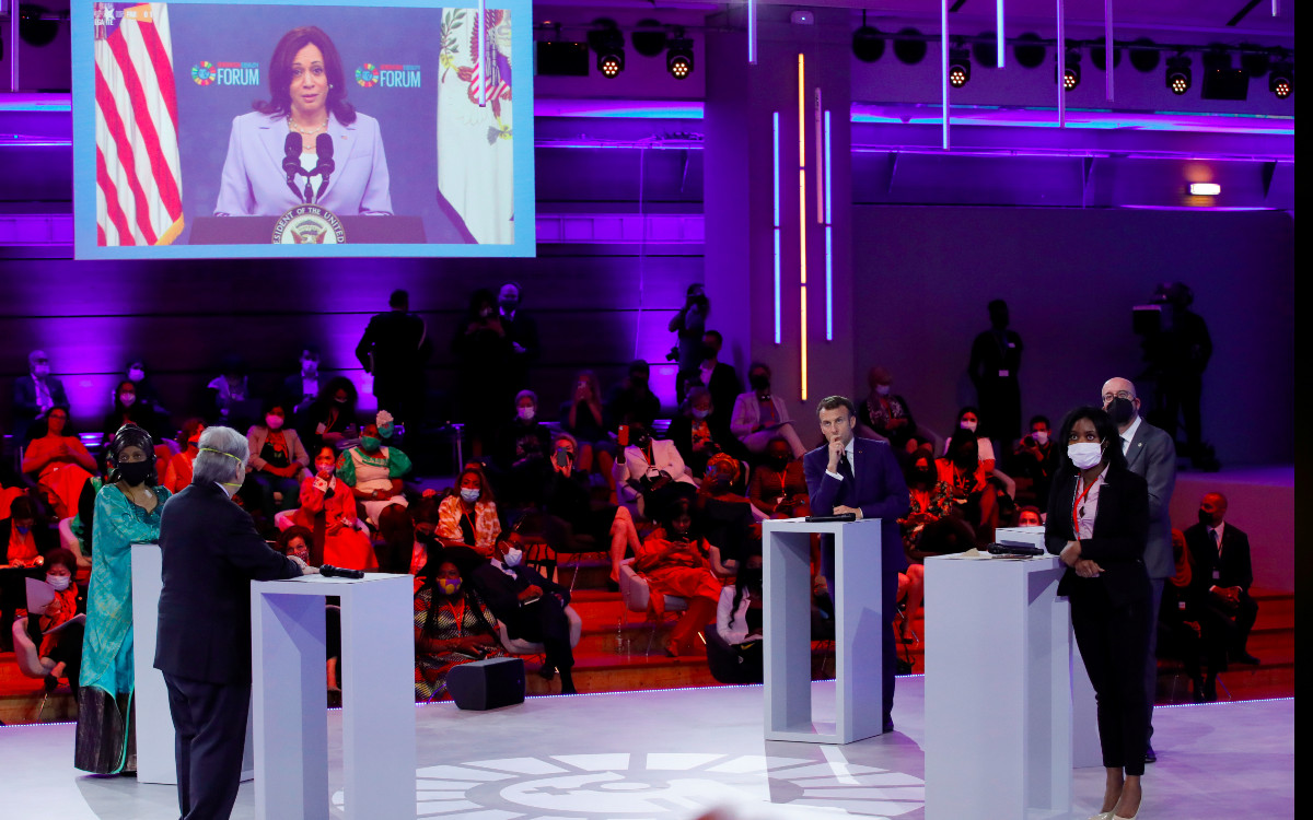 Harris dijo al Foro Generación Igualdad, en una cumbre organizada por el presidente francés, Emmanuel Macron, que la igualdad de género era primordial para fortalecer la democracia.