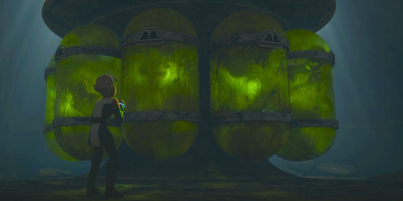 También vale la pena señalar que El lote malo En la temporada 1, Omega fue llevado a una instalación secreta kaminoana en el planeta Bora Vio. Mientras los cazarrecompensas Cad Bane y Fennec Shand peleaban por ella, el joven clon inalterado descubre varios seres sintientes contenidos dentro de una colección de tubos de embriones llenos de líquido verde. Con ese fin, El lote malo Los tubos de los embriones se parecen notablemente a los que aparecen en Exegol. como se vio en El ascenso de Skywalker.