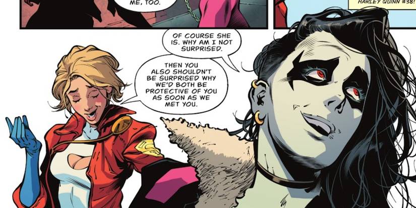 chica poderosa El número 10, escrito por Leah Williams y con arte de Eduardo Pansica, presenta a la heroína epónima aceptando su condición de forastera al admitir que es amiga de Harley Qunn. Más que eso, Power Girl se refiere a Harley Quinn como una de sus amigas más cercanas en el Universo DC.