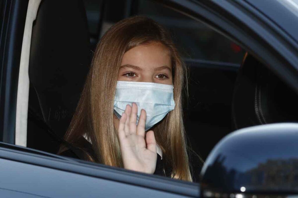Hoy era Sofía quien iba en el asiento del copiloto y, al contrario que su hermana, que ha vuelto a apostar por una trenza que recoja toda su melena, lucía el cabello suelto y liso. Con mascarilla y ya desde el coche, las tres mujeres de la vida del Rey han saludado a los fotógrafos que las esperaban, algo que se ha repetido por parte de las niñas al bajar del coche.