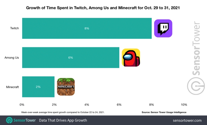 La empresa también echó un vistazo a la aplicación de transmisión de juegos Twitch, y descubrió que el tiempo dedicado a la aplicación había crecido un 8% semana tras semana y vio un aumento del 11% en el recuento promedio de sesiones. Pero en este caso, no todo el crecimiento puede atribuirse directamente al tiempo de inactividad de Roblox. Sensor Tower también señala que Twitch fue el anfitrión de las semifinales de League of Legends durante el fin de semana de Halloween, y contó con muchas transmisiones navideñas especiales de jugadores populares.