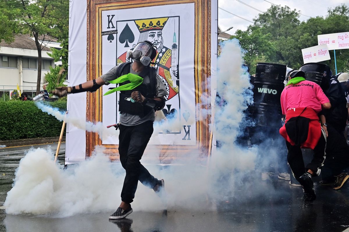 Un manifestante se enfrenta a la policía antidisturbios durante una protesta contra el Gobierno en Bangkok, en Tailandia, el pasado julio.LILLIAN SUWANRUMPHA / AFP via Getty Images