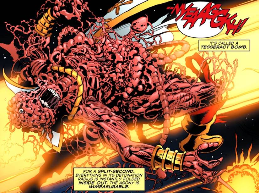 En JLA#112 – de Kurt Busiek, Ron Garney, Dan Green, David Baron y Jared K. Fletcher – la Liga de la Justicia se ve obligada a pedir refuerzos contra un arma impresionante. La amenaza en cuestión es un arma conocida como Void Hound, una nave espacial creada por los Armadores de Qward, que aprisionaron la mente de un dios oscuro dentro de una gigantesca máquina de guerra. Mientras la Liga de la Justicia se enfrenta al Void Hound, el barco lanza una serie de “bombas teseracto”. Estos explosivos dan la vuelta a sus objetivos para destruirlos por completo.ya sea disparado contra una cadena montañosa o, en un momento horrible, contra el propio Shazam.
