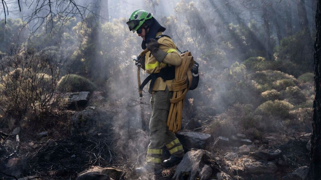 La leve lluvia da una tregua en la contención del incendio que arrasa Sierra Bermeja