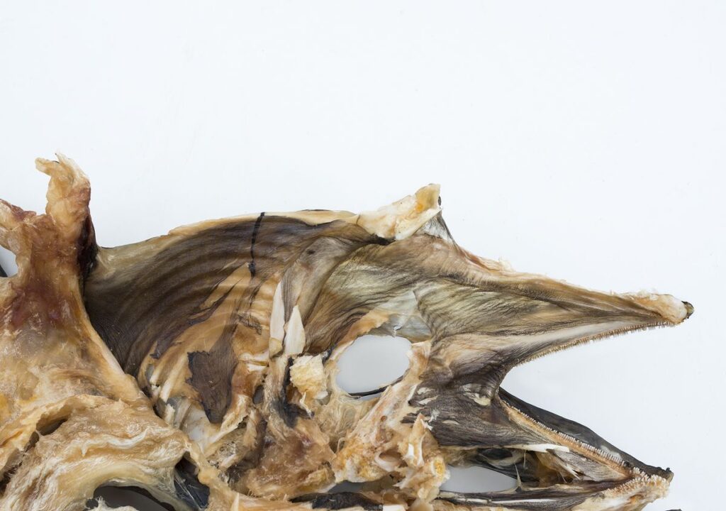 “Quién me iba a decir a mí que iba a acabar siguiendo los pasos de mi abuelo”, dice mientras hace en un congrio las incisiones necesarias para que se oree y seque la carne. Su acento permanece intacto y a la vez usa con naturalidad las palabras locales del oficio. Hacer esos cortes se dice “lañar” y la hoja curva que se utiliza se llama “poda”. Una vez que abre los congrios, los ensarta con varas y los cuelga en una estructura de metal que pasa a una cámara de secado. El pez queda abierto y desplegado de par en par, y su carne blanca toda horadada tiene forma de celosía.