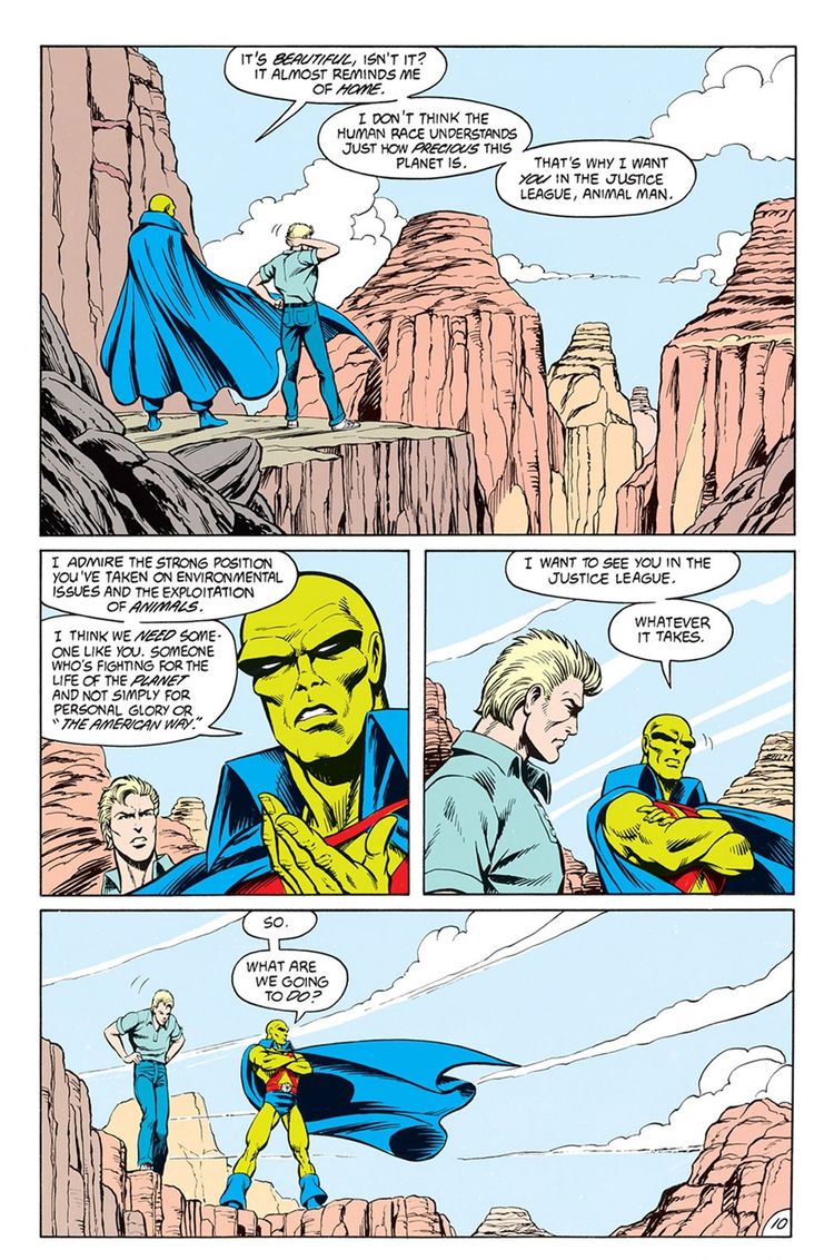 - La Liga de la Justicia eligió a Animal Man por su compromiso de luchar por el planeta, no sólo por la gloria personal o el estilo americano.