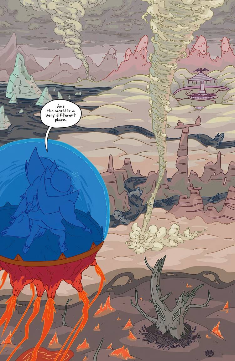 Le lanzan una mirada asesina y le dicen que ha estado besando a varias “personas”, pero no dan más detalles. Teniendo en cuenta que termina casado con la Princesa Flama y las otras tres princesas siguen peleando, La guerra pudo haber comenzado por corazones rotos. Es una razón bastante falsa para que muchas mujeres fuertes inicien una guerra, pero también puede ser la razón por la que Finn fue la única persona que pudo haber descubierto cómo detener la lucha. Lamentablemente, el Mnemonoid llega a Finn una vez más, y su Tiempo de Aventura continúa en un futuro aún más lejano en el número 34.