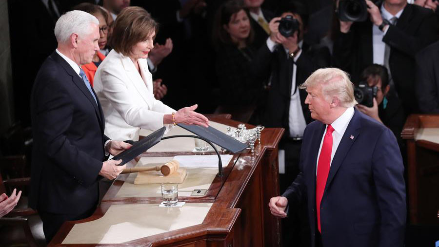 La mano fría de Pelosi: la presidenta de la Cámara Baja rompe el discurso de Trump