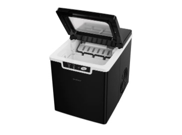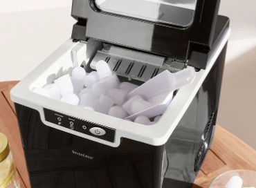 Se trata de una máquina que puede hacer unos nueve cubitos de hielo en ocho minutos. También podemos dejarla en funcionamiento las 24 horas para que haga entre 11 y 12 kilos. Cuenta con un depósito de 800 gramos para almacenar los cubitos de hielo.