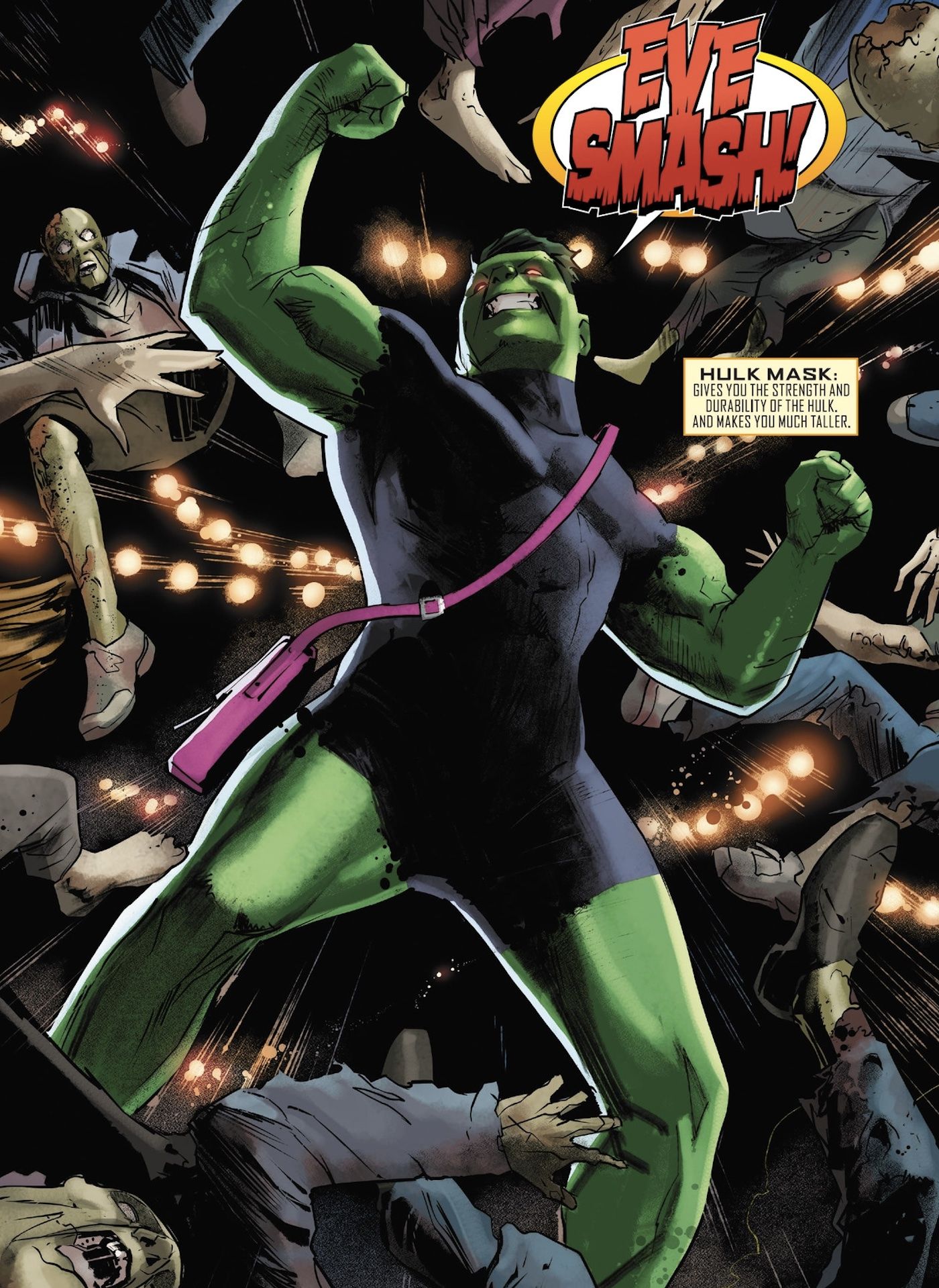“/> Se produce un punto de inflexión en Víspera de Todos los Santos: La gran noche (2023) #1 por Erica Schultz y Michael Dowling. En este número, Janine se topa con nuevas máscaras en su colección, en particular unas que se parecen al Capitán América y a Hulk, pero de origen desconocido. Estos últimos descubrimientos le otorgan poderes similares a los de esos héroes icónicos, presentando un desafío nuevo y sin precedentes para los Vengadores. Equipada con estas habilidades incomparables, Hallows’ Eve emerge como una amenaza significativa que los Vengadores nunca antes habían enfrentado.