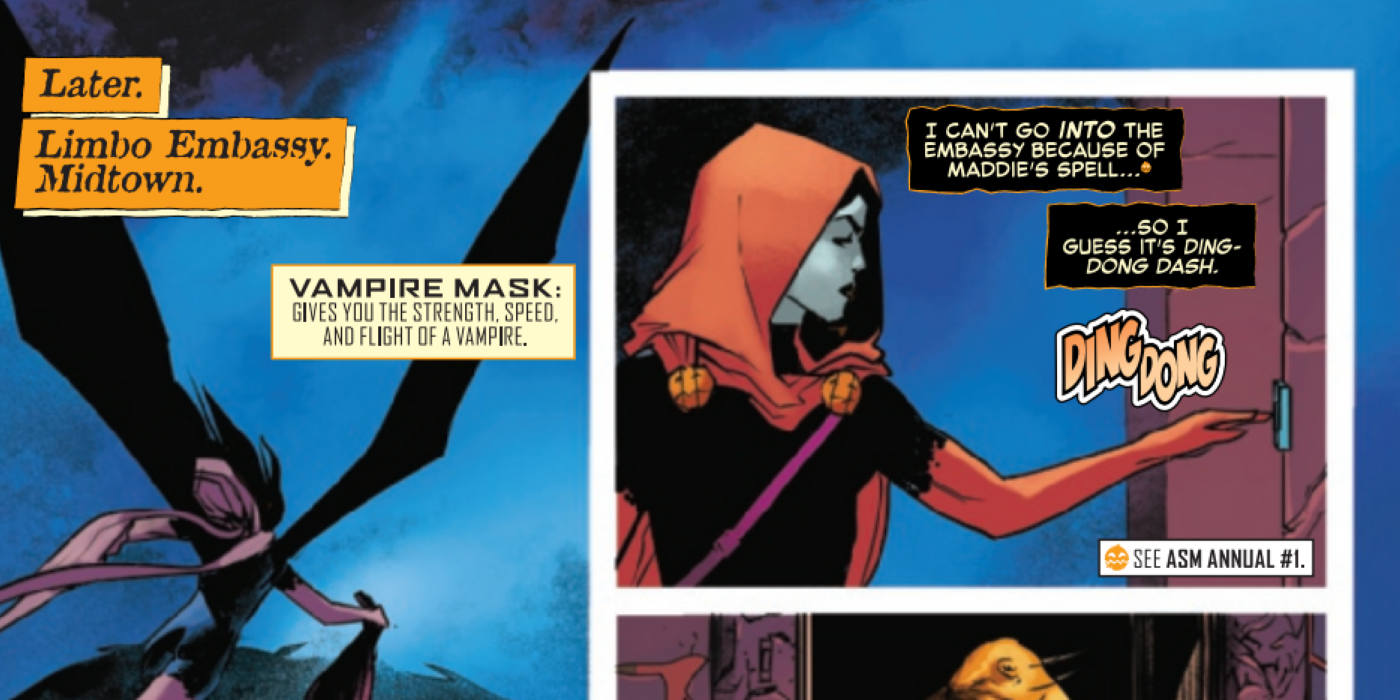 Un aspecto sorprendente reside en el hecho de que los héroes del Universo Marvel parecen ajenos a la Víspera de Todos los Santos, con la única excepción de Spider-Man. Esta falta de conciencia le otorga una ventaja extraordinaria, brindándole acceso a una magia potente cuyas limitaciones ni siquiera ella conoce. Lo que es más preocupante es la libertad ilimitada que tiene del radar de los Vengadores. Este período sin restricciones le ofrece el tiempo necesario para profundizar en el dominio de la variedad de máscaras a su disposición y los vastos poderes que le otorgan. Cuanto más tiempo opere bajo su atención, mayor será su oportunidad de perfeccionar y dominar estas diversas habilidades a niveles formidables.