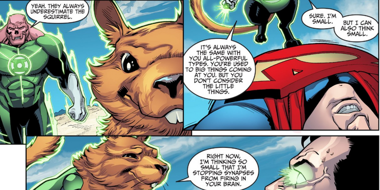 Un Power Ring se basa en la creatividad de su usuario para sacar a relucir su potencial. Linternas como Kyle Rayner y John Stewart usan sus respectivos antecedentes en arte e ingeniería para crear construcciones que solo ellos pueden crear. Cuando se pone en las manos correctas, o en las patas en este caso, un anillo puede hacer prácticamente cualquier cosa. La aplicación de Ch’p para atacar a Superman donde es más vulnerable es una idea inspirada y probablemente la forma más efectiva de manejar a un Kryptoniano rebelde.