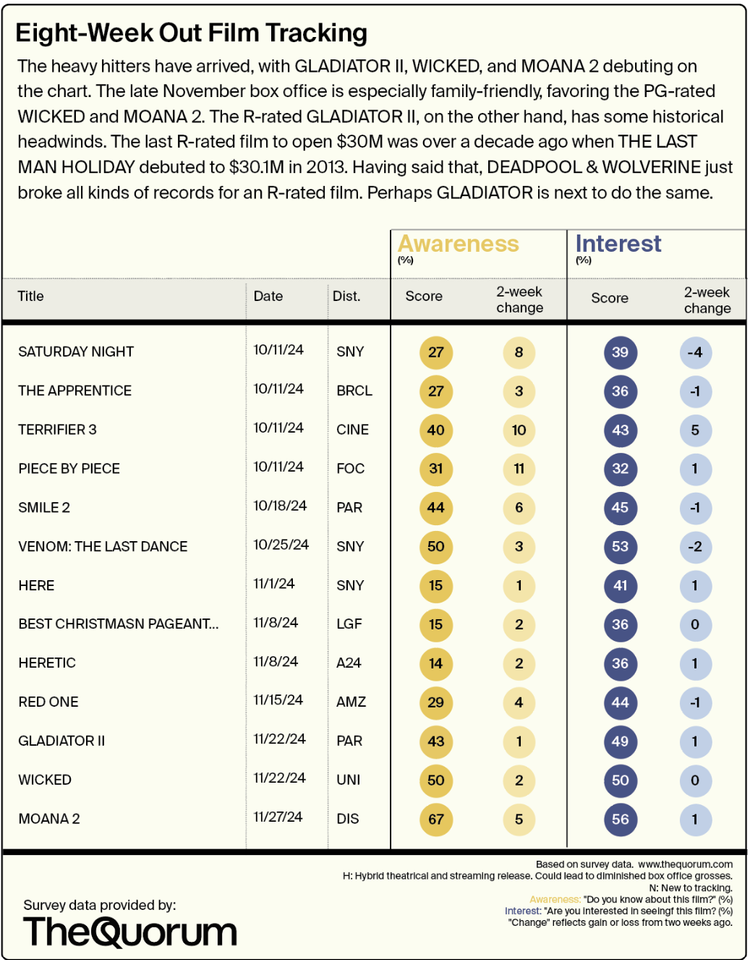 Qué significan estos datos para las batallas de taquilla de Wicked y Gladiator II