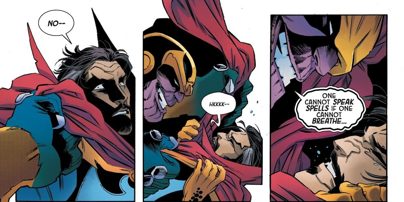 “/> Durante su enfrentamiento, todo lo que Thanos tiene que hacer para someter a Strange es estrangularlo con su propia capa, ya que Strange no puede lanzar un hechizo si no puede hablar. Es una solución simple, pero increíblemente efectiva que cualquier villano puede aprovechar, sumándose a la lista cada vez mayor de debilidades de Strange.