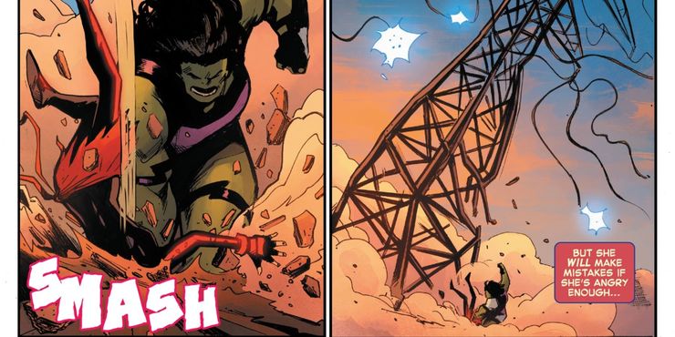 Si bien el poder imparable de Hulk proviene de la ira, ya que le da la fuerza para sobrevivir prácticamente a cualquier ataque, She-Hulk parece volverse más descuidada a medida que se enoja más sin poder compensar ese descuido con poder puro, lo que hace que el Cascola mayor fortaleza de Ella HulkLa máxima debilidad de .
