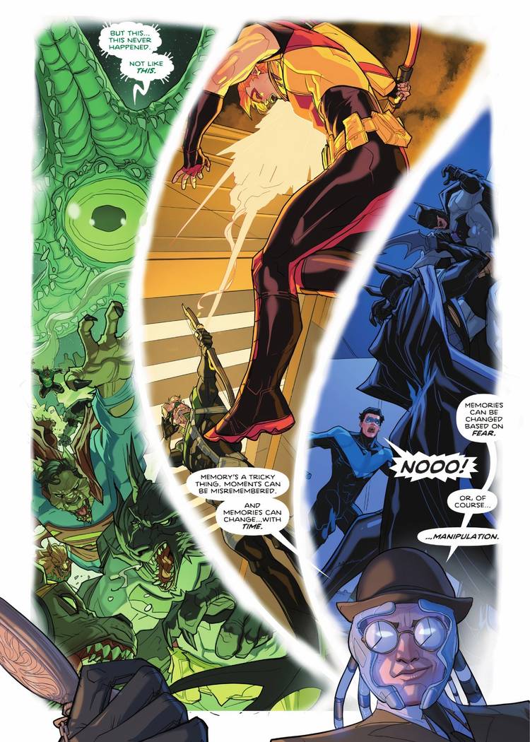 En Titanes #17 de John Layman, Pete Woods y Wes Abbott, Clock King desata sus nuevos poderes temporales contra los Titanes. Al jugar con sus mentes, el villano logra atraparlos en sus recuerdos más oscuros, extrayendo de la historia reciente de DC para encontrar los traumas que más los marcan. La visión de Chico Bestia es particularmente inquietante, ya que se ve obligado a revivir su transformación en Garro, que fue el combustible de una pesadilla.