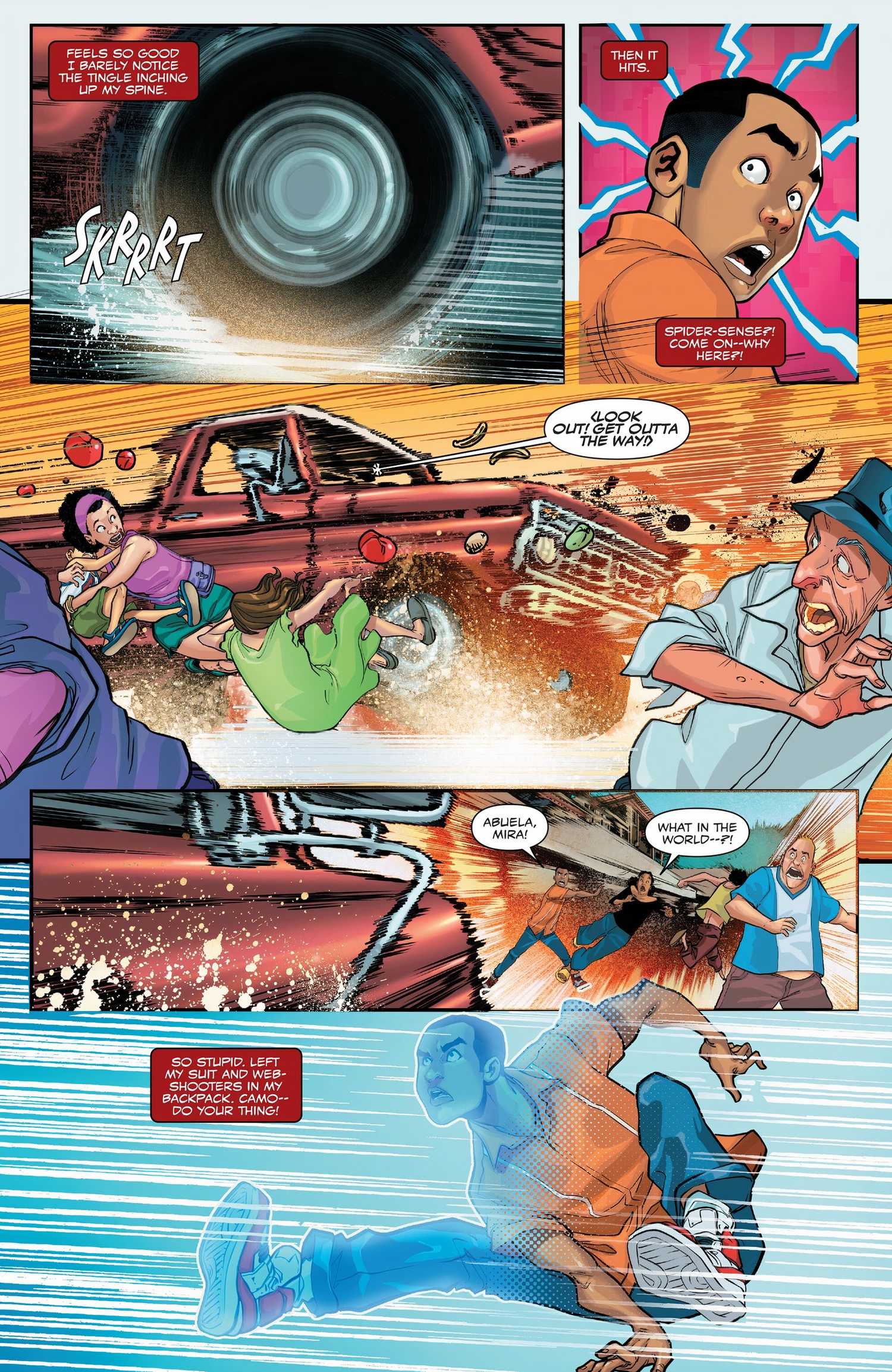 Miles Morales: Spider-Man Anuario El número 1, escrito por Cody Ziglar y con arte de David Baldeón, comienza con Miles viajando a Puerto Rico para pasar un buen rato con su abuela. Mientras los dos compran en un mercado al aire libre, un vehículo fuera de control se dirige a toda velocidad hacia ellos, lo que activa el sentido arácnido de Miles y lo insta a actuar.