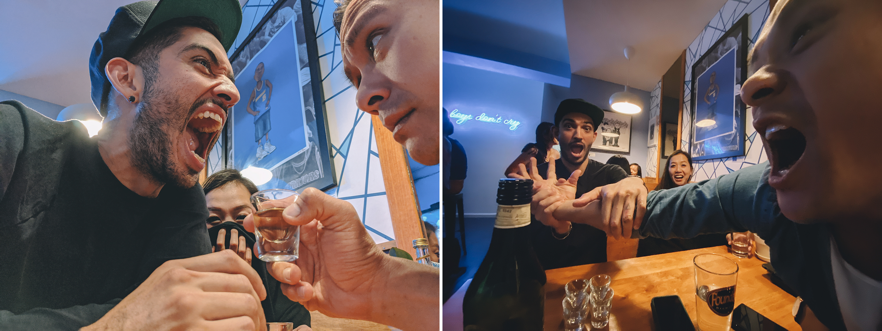 Pixel 4 produce imágenes más brillantes, pero el iPhone 11 Pro mantuvo el ambiente de la barra. Además, disparar súper ancho en humanos agrega cierta peculiaridad.