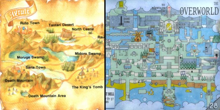 Una vez que los jugadores localizan SayoLa primera página de instrucciones revelará el objetivo de esta región, el sonido de las tres campanas en The Overworld. La progresión adicional eventualmente otorgará a los jugadores el mapa de esta área y las hojas de información de la mecánica del juego. Una mirada al mapa de Overworld tiene una clara conexión con el mapa de Hyrule dentro del manual de Zelda, que muestra ubicaciones centrales con nombres etiquetados. Aunque tienen un diseño diferente, ambos manuales tienen información sobre las muchas áreas que encontrará el jugador e imágenes de los enemigos de esa región.