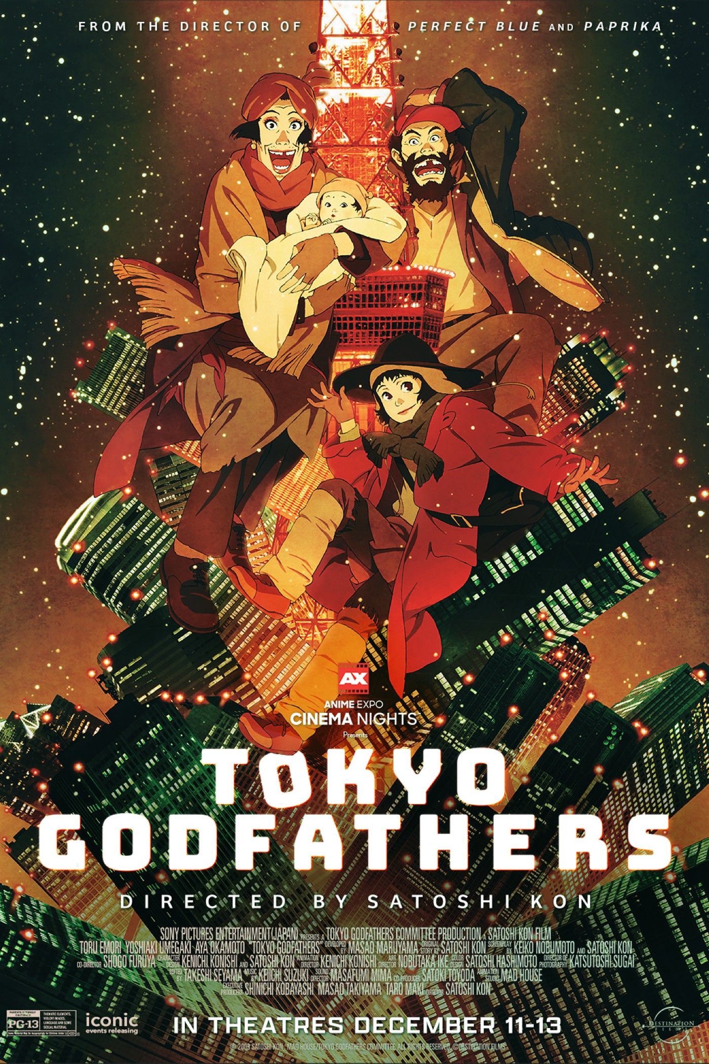 Padrinos de Tokio se centra en temas de familia encontrada mientras emplea su propia versión de los milagros navideños. Sin embargo, es un comentario sobre la familia y la idea de hacer propia en situaciones difíciles. El escenario navideño no debería significar que los nuevos espectadores deban tomarla como una película alegre de temporada, como tantos clásicos estadounidenses centrados en la festividad. Es una película para adultos con temas serios a pesar de incluir momentos de humor. Los fanáticos del anime que quieran volver a visitar este clásico con una experiencia en pantalla grande, o aquellos que quieran experimentarlo por primera vez como se habría mostrado hace veinte años, no deben perderse este evento cinematográfico especial.