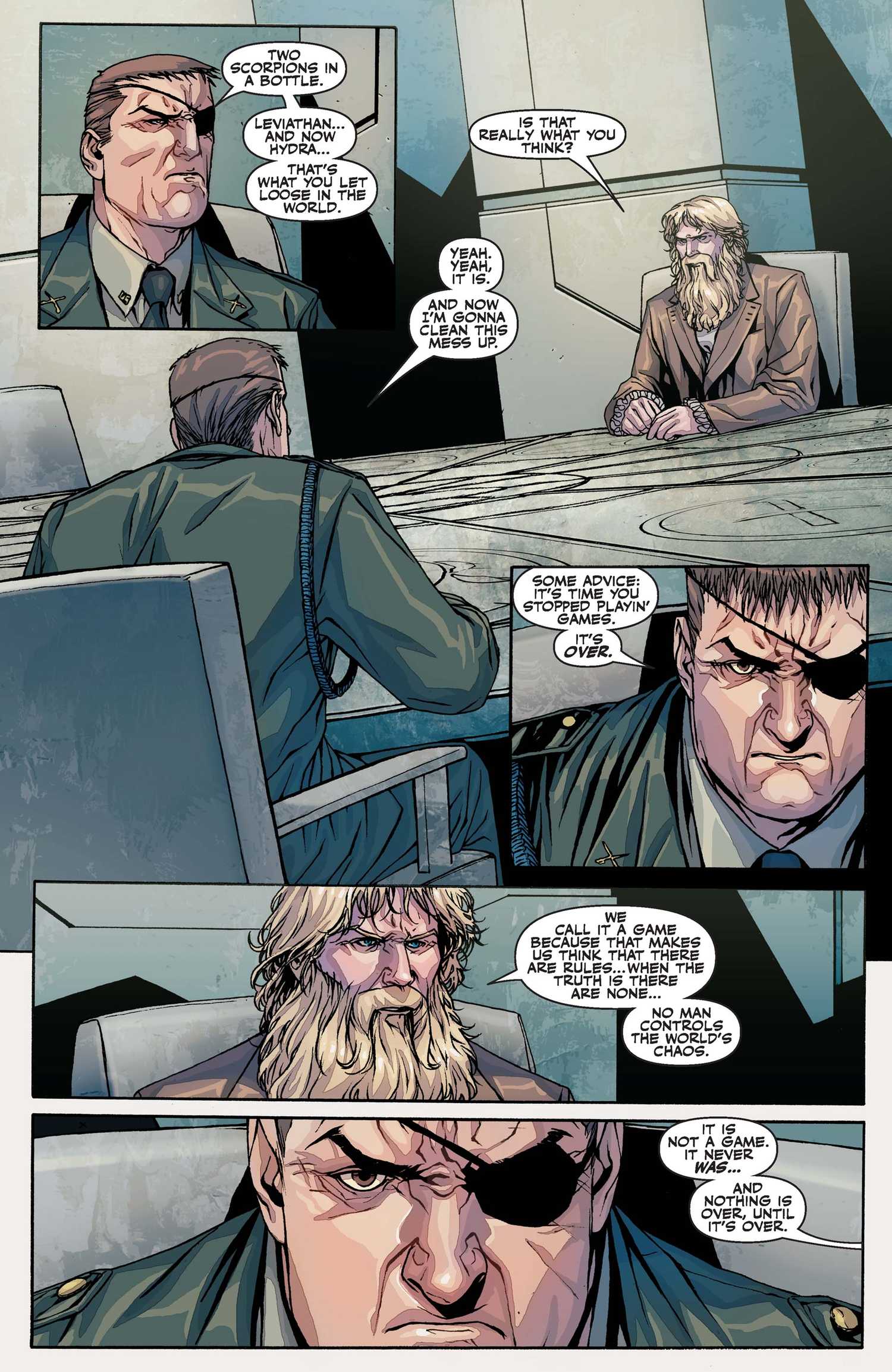 Lo que hace Nick Fury al robar la tecnología LMD de Leonardo da Vinci no es tan malo como parece al principio. Da Vinci había reunido “La Gran Rueda”, también conocida como el Zodíaco, un consejo de los mejores espías y líderes de espionaje del mundo, incluidos miembros de los futuros SHIELD e HYDRA. A cambio de realizar misiones secretas, da Vinci prometió a cada grupo tecnología con la que “ganar” sus batallas por el dominio global. Sin embargo, la “‘traición” de Fury es el menor de los problemas del consejo. La contraparte rusa de SHIELD, Leviathan, roba cámaras de estasis de creación sobrehumana de un ejército, que utilizan para desaparecer toda su organización.