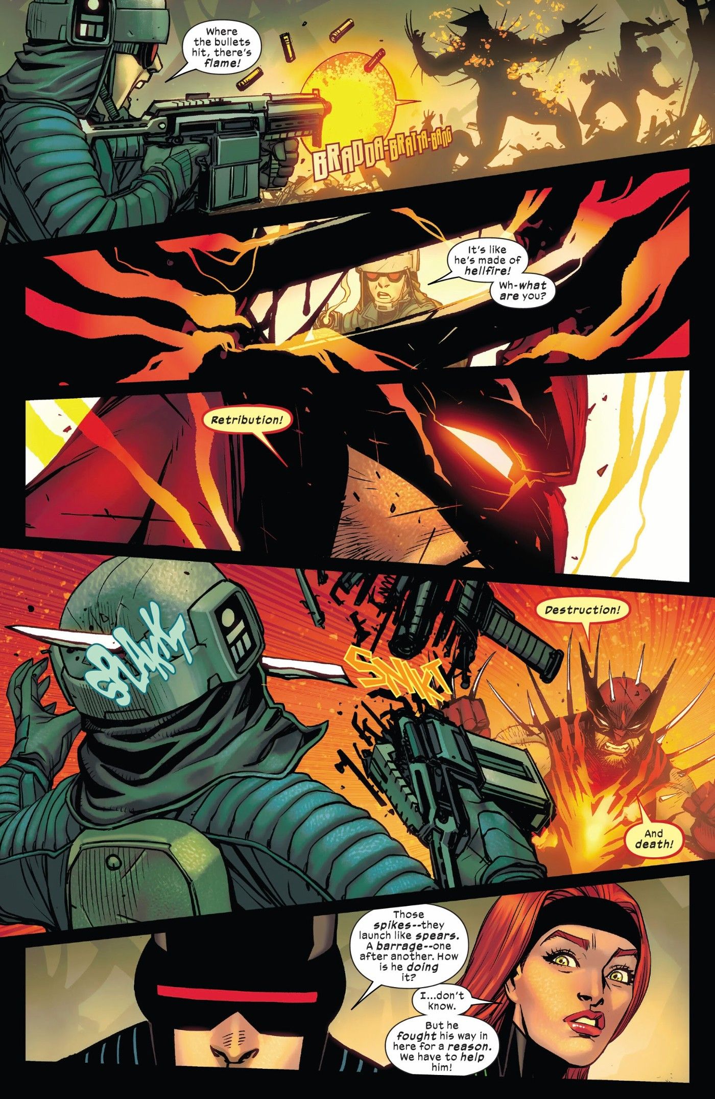 - Wolverine, imbuido de Fénix, tiene púas de adamantium que crecen en su cuerpo y puede disparar púas ardientes, lo que lo convierte en una máquina de matar.