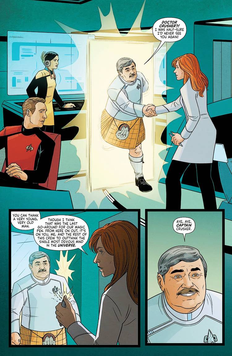 El diagnóstico de Beverley Crusher sobre Lore como la mayor amenaza que ella y la tripulación estelar del Theseus han enfrentado llega como parte de un frenético intercambio con Montgomery Scott, mientras la intensidad de la situación aumenta.De ahora en adelante, depende de ti, de mí y del resto de la tripulación superar a la mente más perversa del universo.“, le dice Crusher a Scotty, a lo que él responde solemnemente: “Sí, sí, Capitán Crusher.” Dado que a finales de viaje a las estrellas #23, Lore aparentemente ha destruido toda la existencia, es justo decir que Crusher no estaba exagerando.