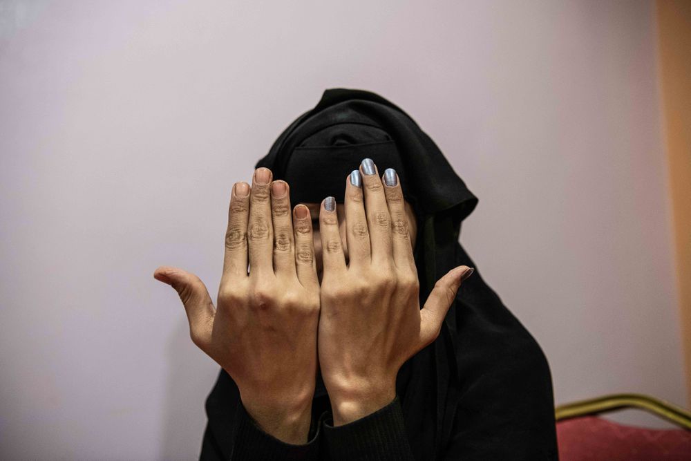 “¡El niqab [velo facial integral] nos da igual, lo que queremos es estudiar y vivir!”, suelta entusiasta Rau, pseudónimo que escoge esta joven yemení de 20 años. Mentir se ha convertido en la única forma de supervivencia en la doble vida que lleva esta adolescente, algo patente cuando se desprende del niqab y de los guantes negros. “Trabajo en casa con una mano y mantengo cubierta la otra para que mi padre no vea el esmalte de uñas”, dice mostrando el reverso de las manos. Piel ajada en la mano derecha, con uñas mordidas y ennegrecidas por horas de coladas y fregado son señales de su vida diaria. Largas uñas postizas pintadas con un morado metálico en la mano izquierda, con una piel más tersa e hidratada, espejo de sus sueños. El resto de las cinco jóvenes presentes en la entrevista se desprenden a la vez de sus guantes y, entre carcajadas, enseñan sus llamativas manicuras, siempre en la mano izquierda.