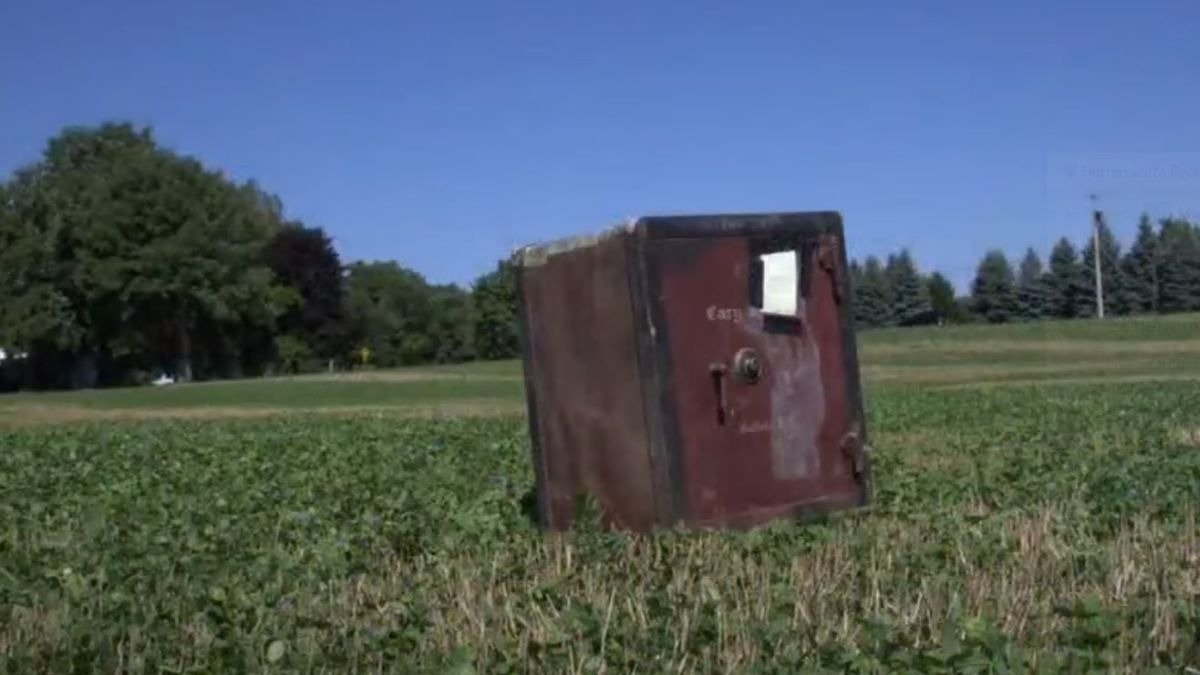 Según las primeras estimaciones, la caja fuerte que ha aparecido en la granja pesa entre 500 y 600 kilos. Kirk Mathes explica que en el pueblo hay algunos niños locos a los que les gusta gastar bromas. Pero, teniendo en cuenta el peso de la caja, es un verdadero misterio cómo llegó hasta la finca.