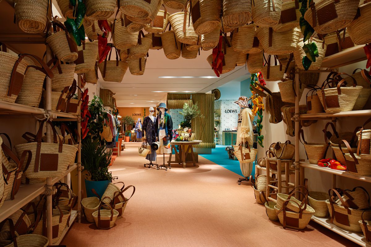 Con todo, son las Baleares donde se concentra la acción, con Ibiza a la cabeza. En su exclusiva Marina se han establecido Louis Vuitton, todo cristal y cerámica azul, para despachar su colección cápsula estival y una edición limitada del bolso Capucines; Loewe con la ya habitual propuesta Paula’s Ibiza, tributo a los recuerdos pitiusos de juventud de su director creativo, Jonathan Anderson, esta vez recreados con texturas de cal, esparto, plantas nativas y decoración artesana a cargo de Javier Sánchez Medina; y Gucci, que se estrena en la isla con un espacio inspirado en los motivos florales de Ken Scott que salpican la colección Epilogue, aunque son las cápsulas Towards Summer y la más nostálgica Resort las que ocupan el verano al estilo Alessandro Michele. La casa italiana es una de las que hace mayor despliegue estacional, con puestos en Mikonos, Cannes, Río, Miami, Hawái…