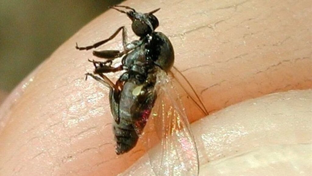 Se trata de un insecto muy pequeño, de apenas tres milímetros de longitud, que, a diferencia de otros insectos, no pica sino que muerde. El mordisco es muy doloroso, y en algunos casos los afectados deben ser hospitalizados.