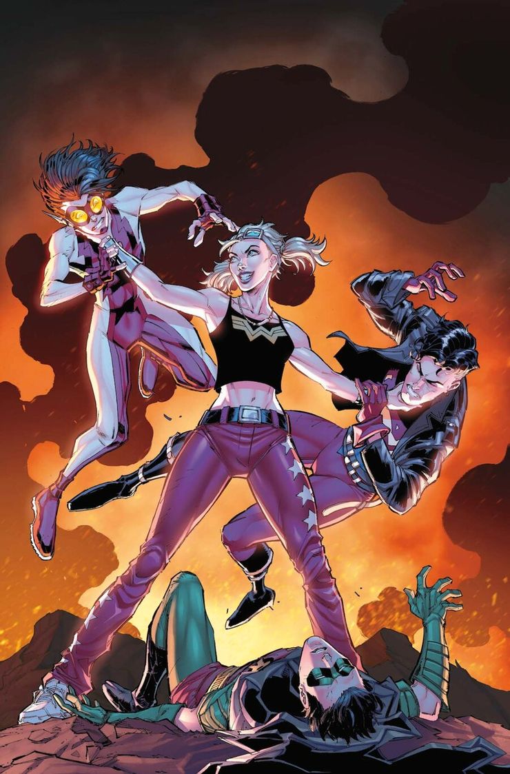 El equipo de Young Justice estaba formado originalmente por Tim Drake (Robin), Conner Kent (Superboy) y Bart Allen (Impulse), y Cassie Sandmark (Wonder Girl) también se unió rápidamente a sus filas. Desde entonces, el equipo ha estado en innumerables aventuras juntos y soportado un inmenso trauma, dolor y amor, con DC demostrando que no importa lo que le suceda al universo, estos jóvenes héroes siempre terminan juntos de nuevo. La próxima crisis oscura evento gira directamente fuera de la muerte de la liga de la justicia que ve a los principales jugadores de la Liga de la Justicia aparentemente asesinados, incluidos Superman, Batman, Flash y Wonder Woman, los mentores y la familia del equipo central de Young Justice.