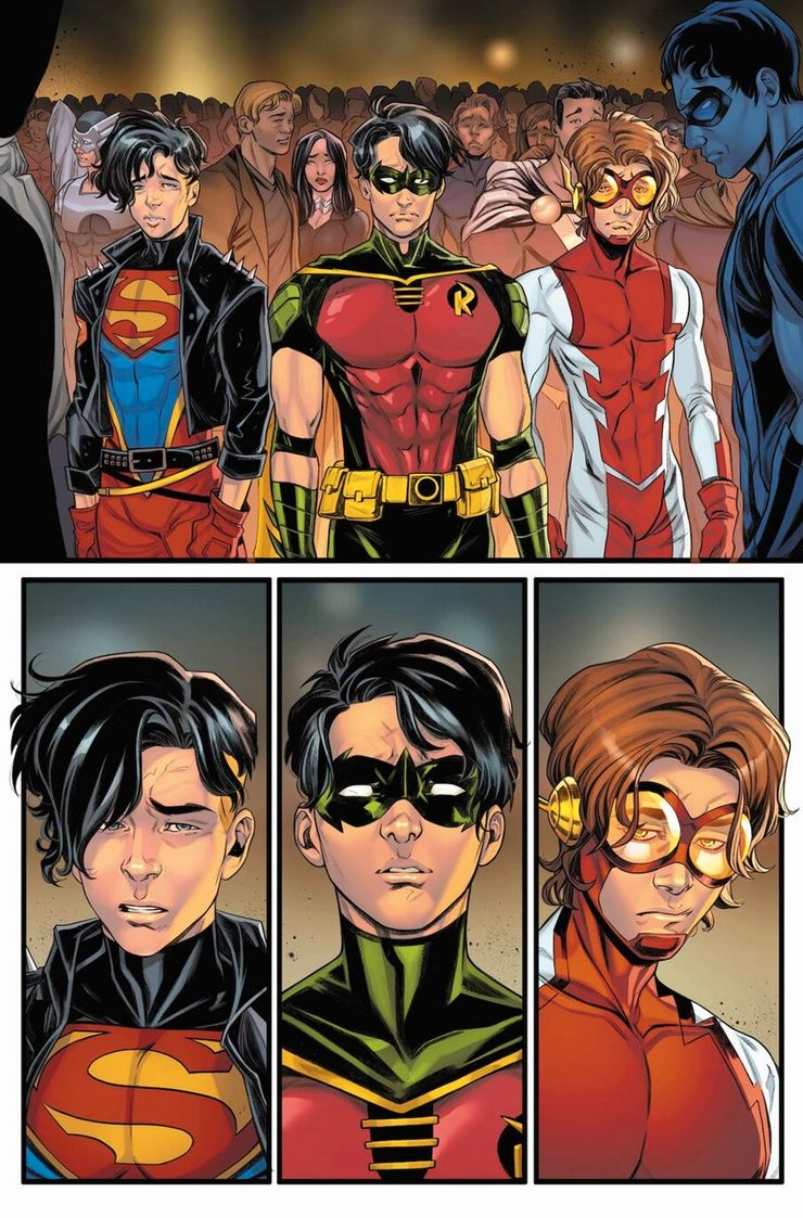 Fitzmartin continuó discutiendo cómo el drama y el trauma llenaron las vidas de los miembros de Young Justice, destacando cómo el 2019 Justicia Jóven La serie, que vio la introducción de Teen Lantern, Spoiler y Jinny Hex en el equipo, también devolvió la vida a Conner Kent y Bart Allen. Las hermosas imágenes de vista previa, compartidas arriba, claramente centran la tensión y la tristeza que el grupo siente como colectivo, mostrando la muerte original de Conner, el breve romance que Tim Drake y Cassie Sandmark compartieron, y la relación entre Tim y Stephanie Brown que terminó fuera del panel. Con la reciente salida del armario de Tim Drake como bisexual en Batman: Leyendas urbanas #6 (también de Fitzmartin), ha revelado que gran parte de la historia se centrará en Tim y que, “Esta es una continuación de su historia, y esta es una continuación del viaje en el que se encuentra este personaje.“