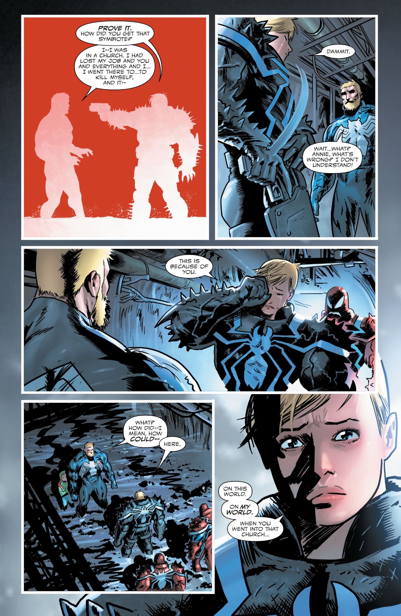 Este oscuro futuro alternativo se ve en la década de 2020. Veneno #29 de Donny Cates, Luke Ross, Jesús Aburtov y Clayton Cowles. En esta línea de tiempo, en lugar de que Eddie Brock vaya a la iglesia y encuentre el simbionte de Venom después de que se separa de Spider-Man, termina quitándose la vida. Esto da como resultado que el simbionte de Venom encuentre a la esposa de Eddie, Anne.