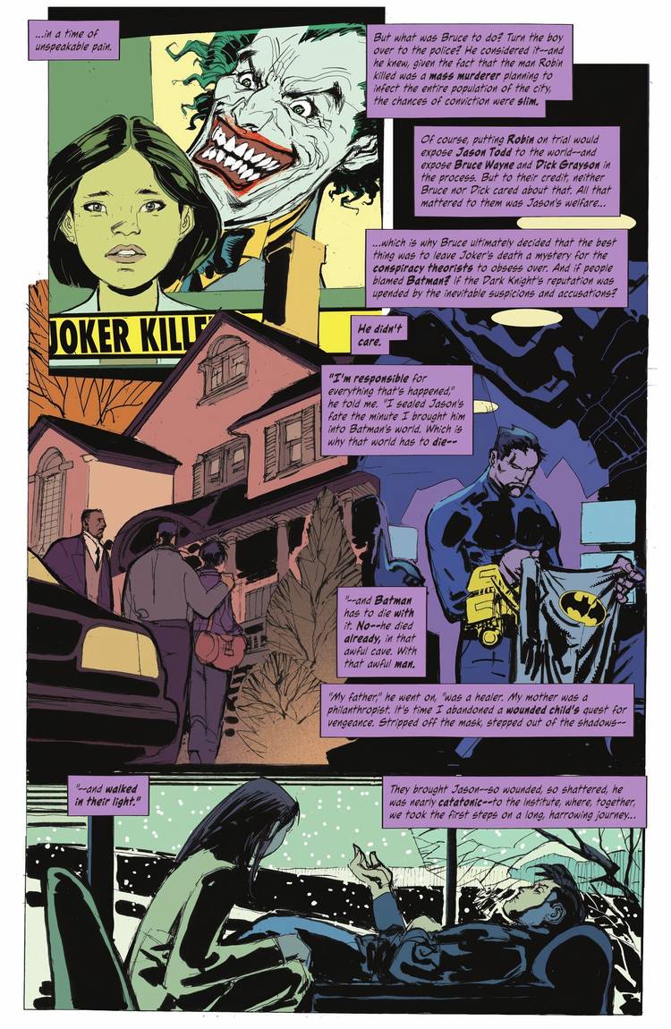 La sorprendente situación que provoca que Bruce deje de ser Batman se revela en Desde DC Vault: Muerte en la familia: Robin vive #4 de JM DeMatteis, Rick Leonardi, Rico Renzi y Taylor Esposito. Esta historia sigue una historia alternativa de Gotham, explorando lo que sucedería si Jason Todd no fuera asesinado por el Joker en el original. Muerte en la familia por Jim Starlin y Jim Aparo. Jason todavía termina terriblemente traumatizado, lo que finalmente culmina con el asesinato del Joker.